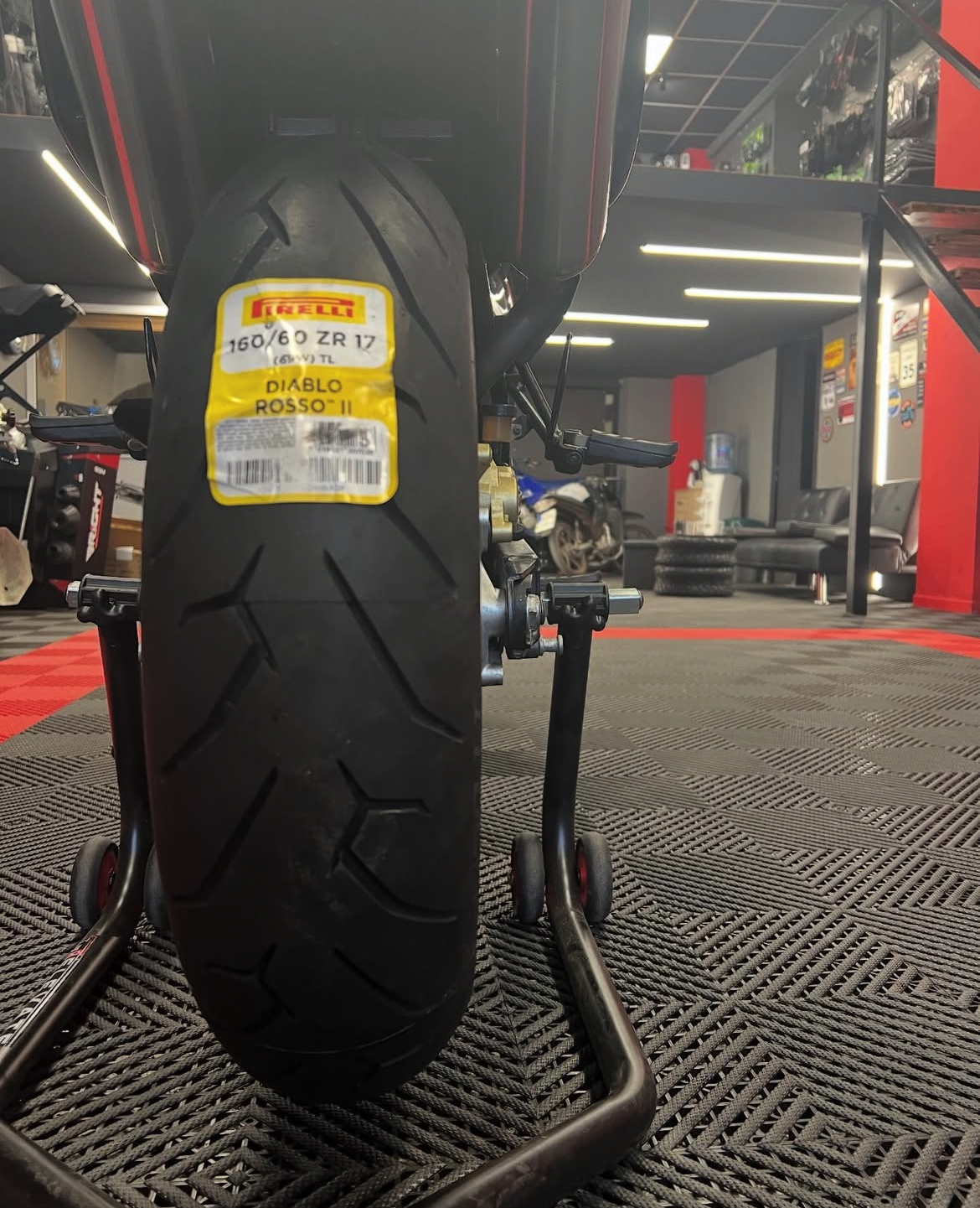 Същевременно разполагаме с голямо разнообразие от гуми от водещи компании в бранша, покриващи всеки тип мотоциклет и стил на каране. В специално обособеното ни пространство поемаме незабавно и отговорно смяната на гумите ви, предлагайки бързо обслужване и безупречен резултат от опитни професионалисти.