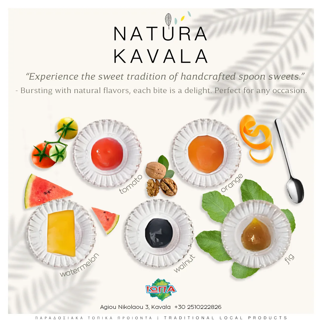 Открийте скритите съкровища на Кавала в един уникален онлайн магазин! На вашата трапеза не трябва да липсват превъзходното маслиново масло от първи пресове, чистият местен мед, избраните маслини и традиционното узо от нашия регион. Търсите идеалния подарък? Изберете сред ръчно изработени бижута с висока естетика, свещи и автентични сувенири, които се отличават. Качеството и традициите на нашия край сега пристигат на вашата врата с едно кликване. Подарете на себе си и на вашите близки едно истинско преживяване на гръцкото гостоприемство и вкус!